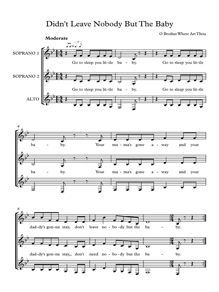 Go to sleep little babe. Most famously heard in the movie O Brother Where Art Thou the traditional lullaby Didnt Leave Nobody but the Baby is performed by artists Emmylou Harris Alison Krauss and Gillian Welch. Go to sleep you little baby Everybodys gone and the cotton and the corn.