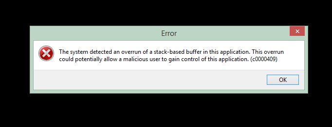 The system detected an overrun of a stack-based buffer in this application. System detected an overrun of a stack-based buffer.
