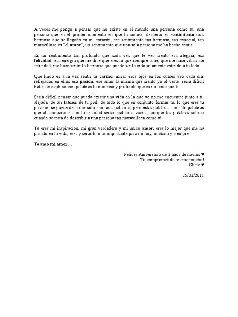 CARTAS DE ANIVERSARIO DE NOVIOS DE 3 AÑOSUn año más y ya van tres.